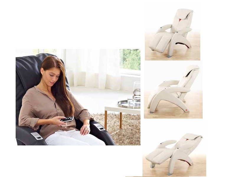 Наклон спинки массажного кресла автоматически регулируется в пределах от 110° до 150°. Угол подставки для ног также регулируется в диапазоне от 0° до 90°.